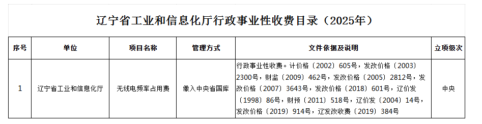 省工业和信息化厅行政事业性收费目录(2025年)